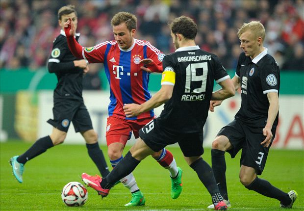 If Bayern were made to wait to break the deadlock, they quickly doubled their lead after the restart. Gotzereceived a Robben pass inside the Braunschweig area, jinked inside two defenders and, with the aid of a deflection, fired the ball past Gikiewicz.