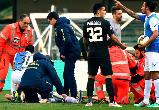 The 19-year-old stretched for the ball in a 50-50 with Nainggolan and his right leg bent as his foot became caught beneath the Belgian, who had met the ball fairly. Matiello was then carried off on a stretcher, his leg in a brace.