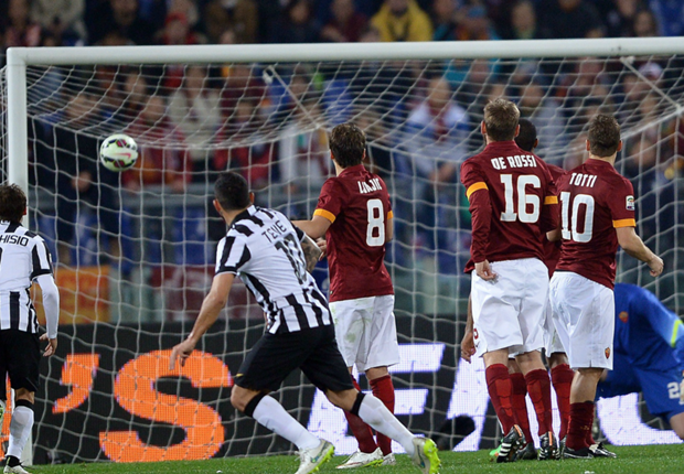 They were second best for most of the fixture, despite the lack of Pirlo and Pogba in the Juve ranks. Only after Tevez had curled home a free-kick when Vassilis Torosidis was sent off for a foul on Arturo Vidal did Roma come to life.